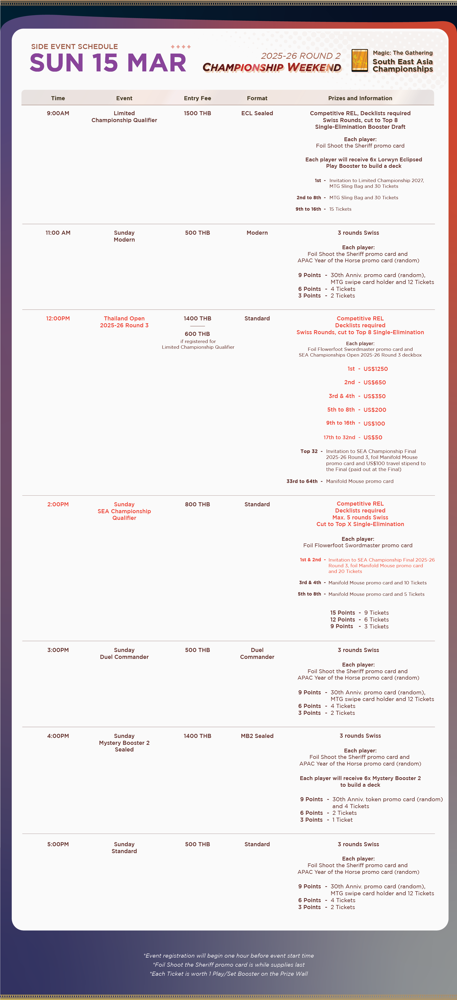 - SEA Championship Final Day 2 - earn an invitation to the Pro Tour and World Championship!